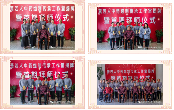 萧若人、炮制顾问黄文星、技术顾问钱光训三位老师宣读《拜师帖》、行三鞠躬拜师大礼并献茶,答谢老师收于门下,表明了发奋努力钻