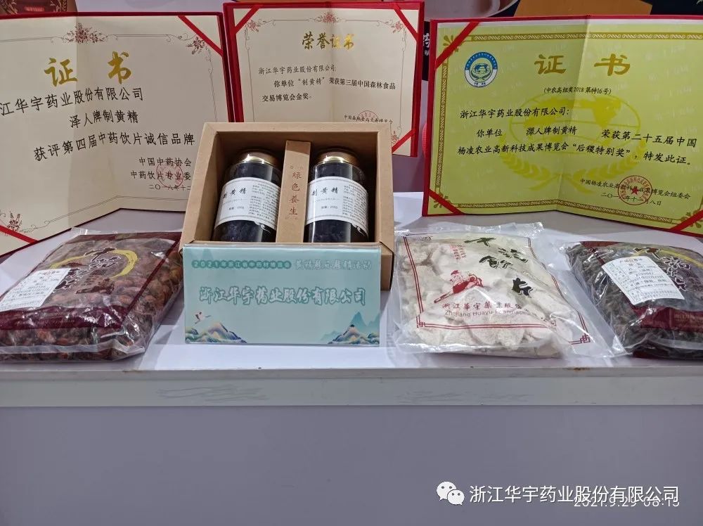 这次受2021年浙江省中药材博览会组委会邀请,2021年9月28-30日,公司参加了“黄精展示展销活动”,推出公司多次获奖产品